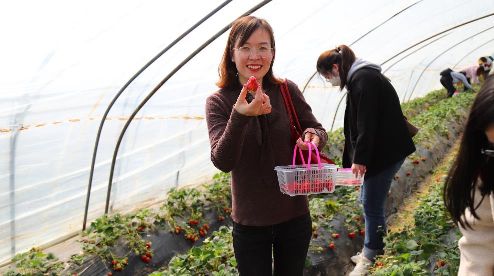 走出室內(nèi),來(lái)到鄉(xiāng)野,我們以特別的方式慶祝節(jié)日,驅(qū)車來(lái)到崔崗草莓采摘園。大家一邊采摘草莓,一邊有說(shuō)有笑,青綠的葉子、芬芳的果,田園春光盡攬于懷。