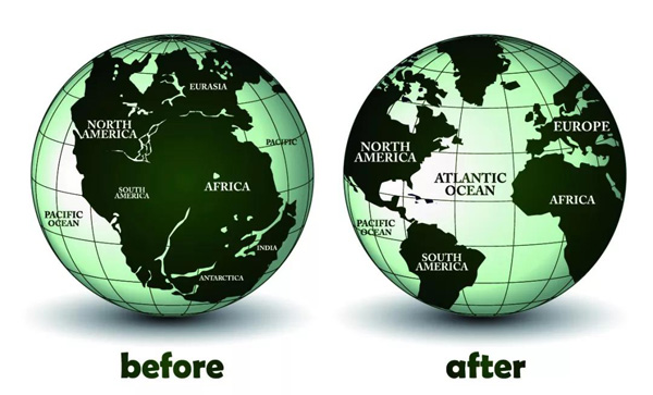大約3億年前,地球上幾乎所有土地都是一個整體。在侏羅紀時期,泛古陸分裂成兩個大陸,隨著時間的推移,它們分裂推移成現(xiàn)在的樣子。